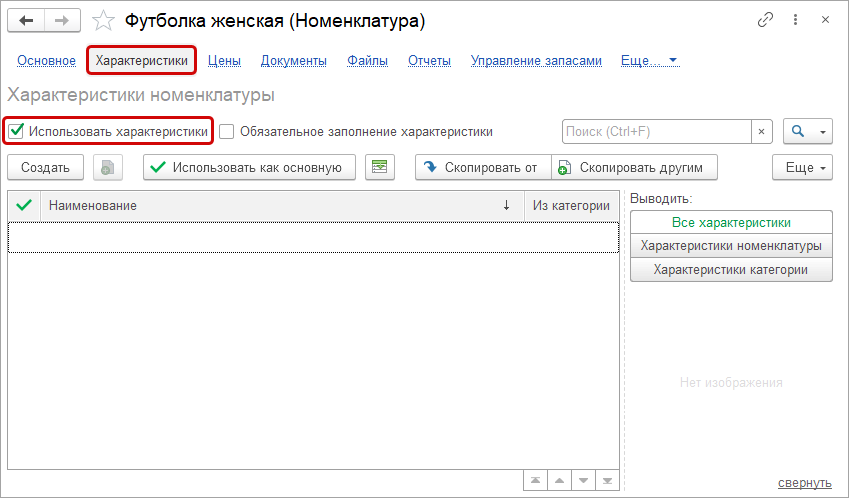 Если такой гиперссылки нет, проверьте, включена ли возможность вести учет товаров по характеристикам. Подробнее об этот здесь. Рис. 1