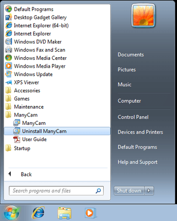 Uninstalling ManyCam for Windows is simple. Go to your add/remove programs Windows control panel and find ManyCam and uninstall, or just go to the ManyCam folder in your start menu and choose «Uninstall». If you cannot find these menus, try reinstalling ManyCam, then uninstall again.